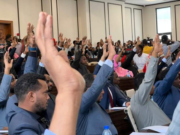 daajis.com:- Xildhibaannada Golaha Shacabka ayaa goordhow si aqlabiyad leh u ansixiyay Ra’iisul Wasaare Xamse Cabdi Barre.